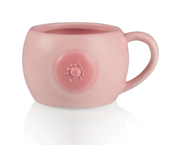 Een mok in de vorm van een borst. Om je favoriete thee uit te drinken of te proosten en wat extra girl power aan je servies toe te voegen.