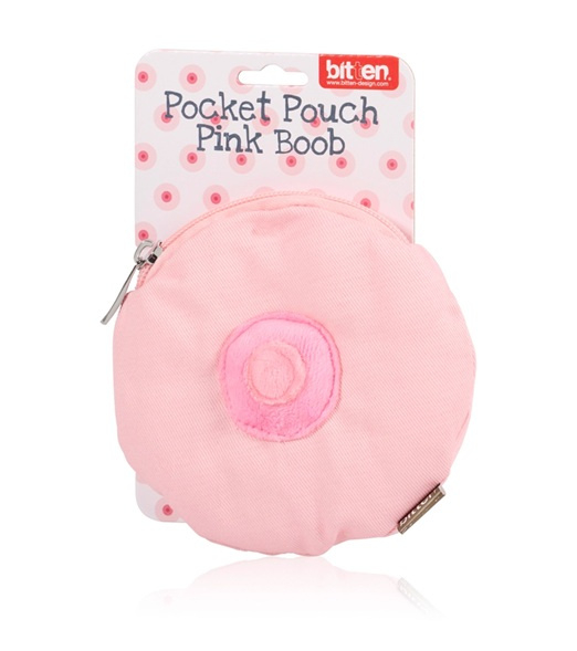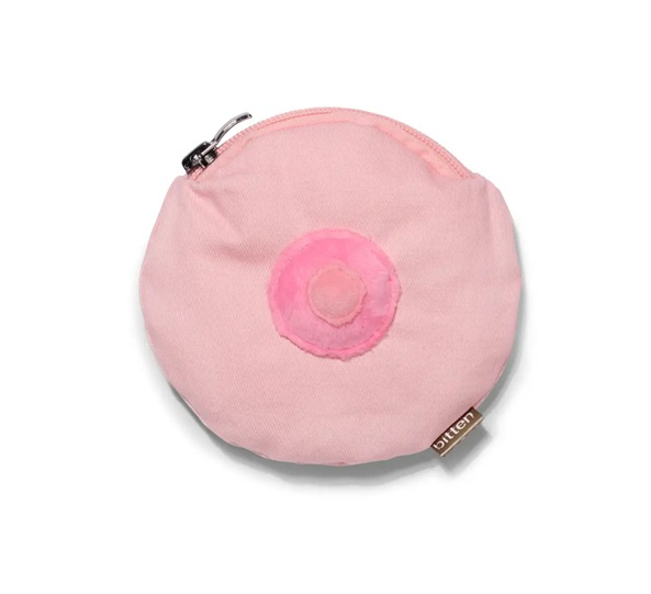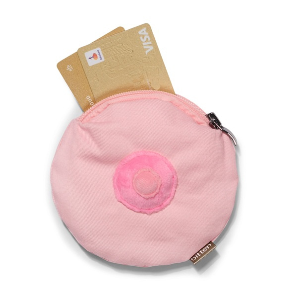 Een portemonnee of opbergzakje in de vorm van een borst met een ritssluiting. Handig om los geld in mee te nemen, of b.v. wat make-up, knipjes, medicijnen zodat deze niet los in jouw tas rondzwerven.