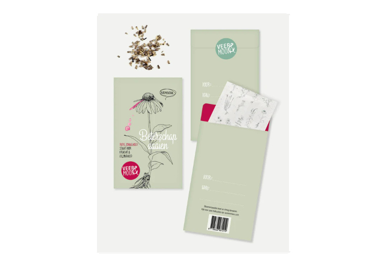Beterschap zaaien Bloemzaden cadeau - Veer & MoonIemand kracht en gezondheid wensen kan met deze bloemzaadjes van de rode zonnehoed. Met dit cadeautje kan je iemand verrassen. Het is een dubbel cadeautje, om te geven en als de bloemetjes gaan bloeien weer!