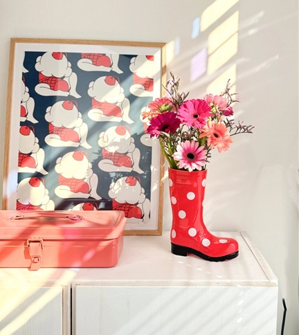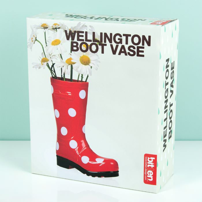Vul deze vrolijke Wellington laars van het merk Bitten met bloemen en je hebt een unieke en vrolijke eyecatcher in huis staan. De vaas is gemaakt van hoogglans keramiek en voorzien van een stippenprint. Ook zonder bloemen er in een toffe accessoire.