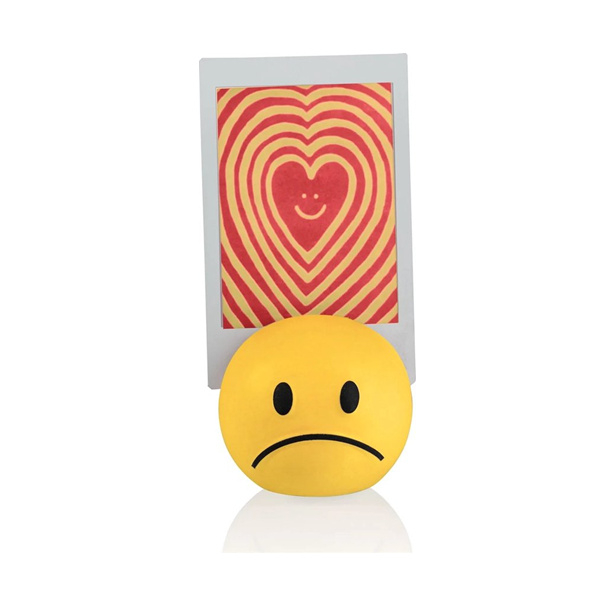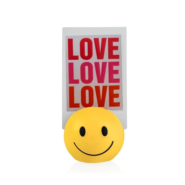 Deze fotohouder van het merk Bitten is gemaakt van keramiek in de vorm van een gele smiley. De fotohouder heeft een lachende en een 'ik heb even mijn dag niet' smiley, aan de bovenkant zit een gleuf waar je een foto of kaart tussen kunt steken.